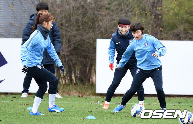 윤덕여호는 오후 4시부터 5시까지 약 1시간 동안 호흡을 맞췄다. 가벼운 몸풀기로 시작된 훈련은 자체 청백전(미니 골대) 때 절정의 분위기로 달아올랐다.