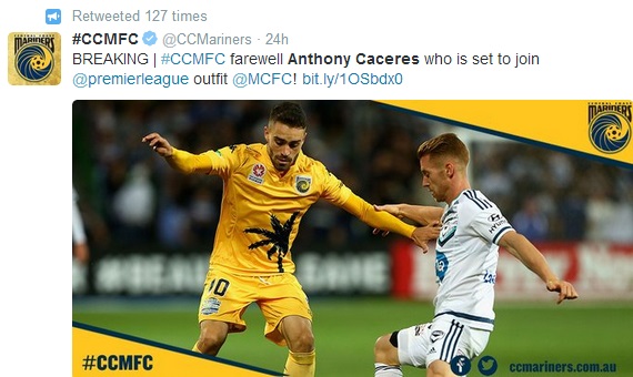 맨체스터 시티가 호주 A리그 센트럴 코스트 매리너스의 미드필더 앤서니 카세레스(24, 호주)를 영입했다.