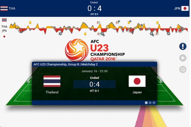 일본은 17일(한국시간) 카타르 도하 그랜드 하마드 스타디움에서 열린 2016 아시아축구연맹(AFC) U-23 챔피언십 B조 2차전서 태국에 4-0의 대승을 챙겼다.