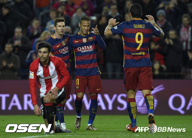 수아레스는 3골, 1도움으로 가장 빛났다. 네이마르 역시 1골, 2도움을 올렸다. 메시와 라키티치도 한 골씩을 보탰다. 6골에 직접 관여한 MSN 삼총사의 대활약을 앞세워 바르셀로나가 축구의 진수를 선보였다. / jasonseo34@osen.co.kr