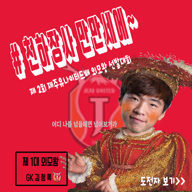 이에 제주는 스트레스를 해소하고 팀 분위기를 끌어올리기 위해 특별한 이벤트를 준비했다. 바로 외모왕 선발대회. 지난해 골키퍼만 대상으로 했던 제1회 외모왕 대회에 비해 권위와 규모가 커졌다. 조성환 감독을 비롯해 선수단 전원이 참가했다.