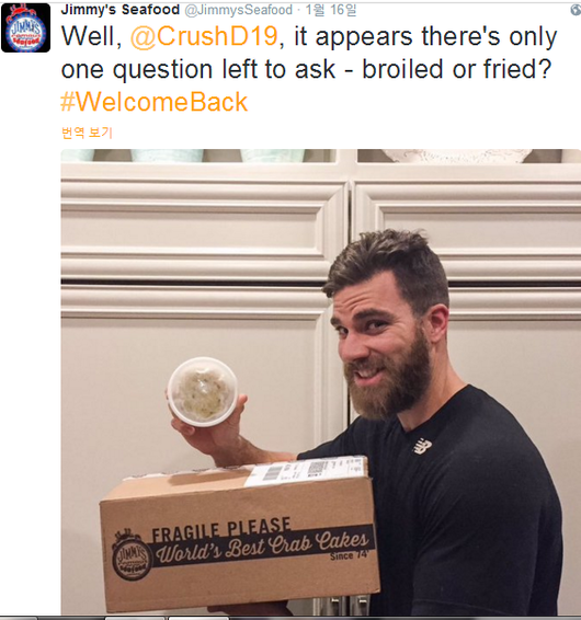데이비스가 마침내 볼티모어와 재계약에 이르자 이 식당은 다시 한 번 공약을 확인했다. 계약직후인 17일 ‘크랩은 제공될 것이다. 돌아온 것을 환영한다’는 멘션과 ‘이제 한 가지 질문만 남아 있다. 삶은 것인가 아니면 튀긴 것인가’라는 멘션을 남겼다(아래 사진, 지미스 페이머스 시푸드 트위터 계정).