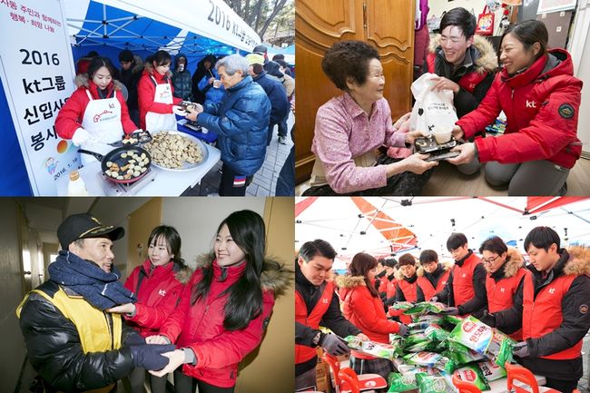 KT는 취약계층의 겨울 나기 지원을 위해 그룹 신입사원 300여 명이 참여하는 그룹차원의 대규모 봉사활동을 시행한다.