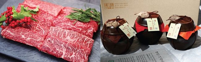 특선 한우 정육 세트(100만 원), 한우 모듬 세트(75만 원), 한우 채끝과 호주 양갈비 세트(48만 원), LA 갈비 세트(25만 원) 등 다양한 명품 육류 상품을 신선도 유지가 가능한 특수 케이스에 고급 보자기로 다시 한번 더 정성스럽게 포장해 선물하는 이의 정성을 그대로 표현하고자 했다. 또한 그랑크뤼 1등급 와인 셀렉션은(1800만 원) 유승민 수석 소믈리에가 엄선한 와인으로 최고의 빈티지 와인만으로만 선별해 구성했다. 이외에도 완도에서 채취한 최고 품질의 전복을 엄선한 완도산활전복 세트(36만 원), 완도산전복장 세트(33만 원), 완도산 건어물 세트(28만 원), 활 바닷가재 세트(23만 원) 등이 있다.