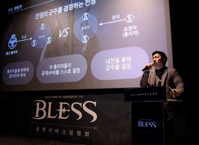 ‘블레스’ 개발진은 ‘블레스’는 MMORPG라는 장르적 재미에 충실히 다가가고자 했다고 밝혔다. 다수가 함께 역할을 수행하는 게임의 장르적 의미를 담아낸 것으로 풀이된다. 여기서 ‘블레스’ 개발진은 MMORPG의 핵심 재미는 대규모 전쟁이라고 생각했다. 진영간 대립 구도를 그리고 있는 ‘블레스’에서 빠져서는 안 되는 콘텐츠가 바로 전쟁이라는 것이다.