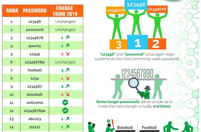 그 결과 2015 최악의 패스워드 1, 2위는 '123456'과 'password'였다. 이 2개의 패스워드는 지난 2013년부터 3년 연속 변함없이 1, 2위를 지키고 있다.