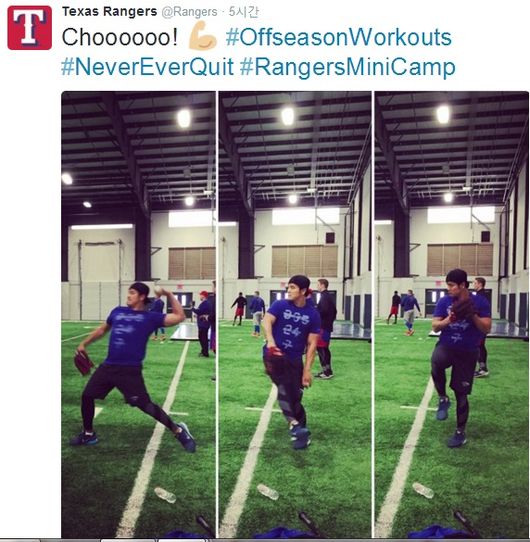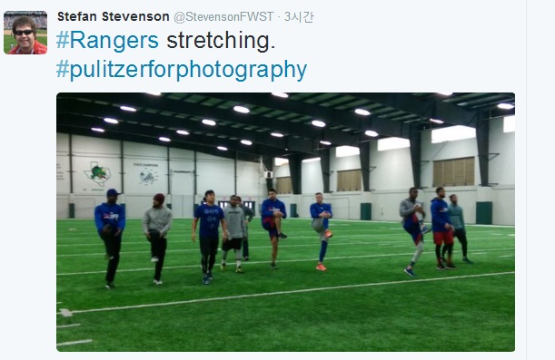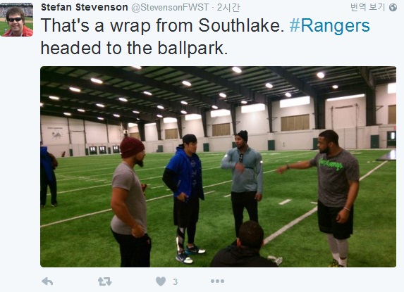 텍사스는 이날 훈련에 참가한 추신수의 모습을 구단 공식 트위터를 통해 전했다(위 사진). 뿐만 아니라 이날 공개된 훈련 현장을 찾았던 포트워스 스타-텔레그램의 스테판 스티븐슨 기자가 자신의 트위터에 훈련 장면 사진을 올렸다.