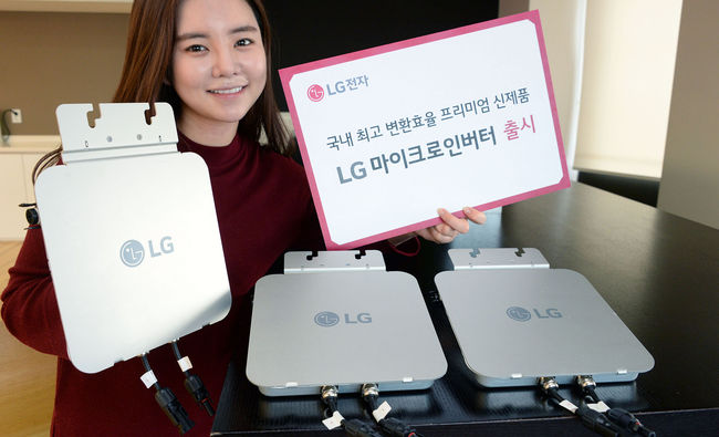 LG전자가 가정용 태양광 마이크로인버터 제품인 ‘LG마이크로인버터’를 국내에 출시한다. 이 제품은 직류를 교류로 변환하는 인버터 효율 95.2%로 국내 최고 효율을 자랑한다. 설치 편의성도 향상해 국내에서 가장 가볍고 (1.6kg) 가장 얇은 제품(28mm) 이다.