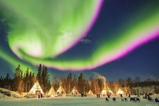 오로라 관측을 위한 별도의 타운이 조성되어 있으며, 원뿔형의 북미 원주민 전통 천막인 ‘티피’에서 따뜻하게 오로라를 기다릴 수 있다. 오로라를 볼 수 없는 낮 동안에는 개썰매, 스노우슈잉, 스노우모빌 등 다양한 겨울 액티비티를 즐길 수 있다.