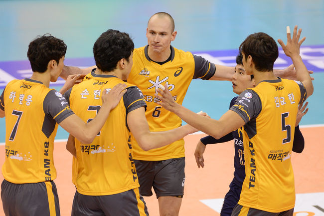외국인 선수 마틴과 국내파 거포 김요한을 앞세운 KB손해보험은 1세트를 따냈지만 2세트를 내줬다. 2세트에서는 김요한이 4점, 마틴이 2점에 그치며 좀처럼 추격의 동력을 만들지 못했다. 3세트에서도 마틴의 공격 성공률이 15%까지 떨어지는 등 컨디션이 살아나지 않았다. 어깨 상태가 불편해보였다. 그러나 세트 막판 추격을 허용한 것을 제외하고는 비교적 무난하게 리드를 잡은 끝에 3세트를 가져왔다. 주전 선수들의 고른 활약 덕분이었다.