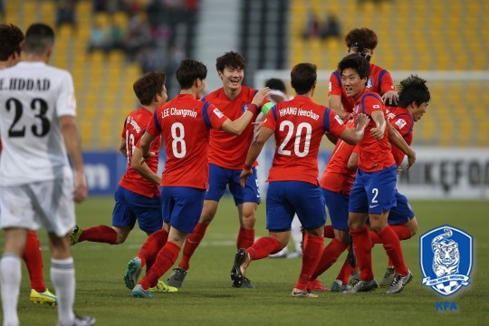 한국은 황희찬과 류승우가 최전방에 서고 문창진, 이창민, 권창훈, 박용우가 미드필더를 맡았다. 심상민, 송주훈, 연제민, 이슬찬이 포백을 섰다. 골키퍼는 구성윤이 나섰다.