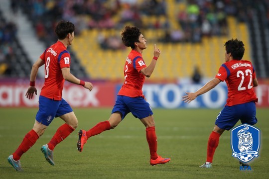 전반전은 완벽한 한국의 분위기였다. 류승우, 문창진, 권창훈, 황희찬 4총사를 내세운 한국은 완벽하게 주도권을 장악했다. 전반 22분 권창훈이 좌측에서 크로스를 올렸다. 수비수를 통과한 공을 류승우가 살짝 내줬다. 쇄도하던 문창진이 그대로 오른발로 밀어 넣어 선제골을 터트렸다. 문창진의 골 외에도 권창훈은 두 번이나 위협적인 슈팅을 때렸다. 한국이 1~2골은 더 뽑을 수 있는 전반전이었다. 요르단은 한국의 공격을 막기에 급급했다.