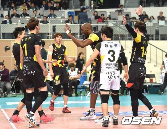 OK저축은행은 24일 장충체육관에서 열린 NH농협 2015~2016 V-리그 5라운드 우리카드와의 경기에서 3-0(25-19, 25-18, 27-25)으로 완승을 거뒀다. 2연승한 선두 OK저축은행은 18승 8패, 승점 56점이 됐다.