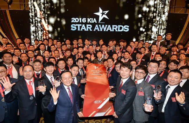 기아차는 22일 밀레니엄 서울 힐튼 호텔(서울 중구 소재)에서 141명의 2015년 판매우수자들과 김창식 기아차 국내영업본부장 등 총 290여 명이 참석한 가운데 ‘2016 기아 스타 어워즈’를 개최했다.