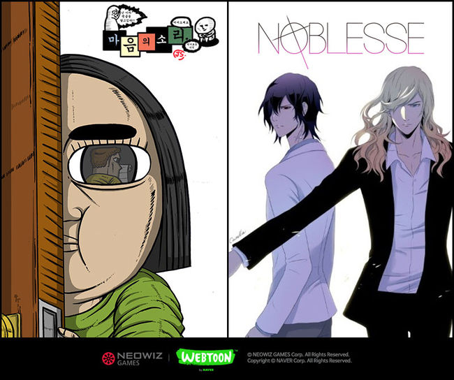 ㈜네오위즈게임즈는 25일 ㈜네이버와 제휴계약을 체결, 인기 네이버 웹툰인 ‘마음의 소리’와 ‘노블레스’ IP(지적재산권)을 활용한 동일한 이름의 신작 모바일 게임 2종을 서비스할 예정이라고 밝혔다.