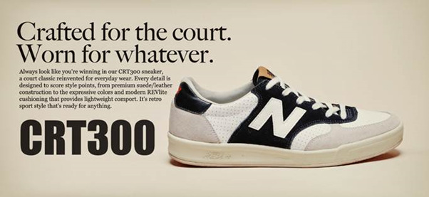 CRT300은 80년대의 테니스 감성 디자인과 현대의 기술이 접목된 뉴발란스 대표 클래식 코트화이다. CRT300은 뉴발란스 최초의 코트화인 CT300에 뉴발란스의 최상급 러닝화에 사용하는 초경량 중창 소재인 레브라이트(REVlite)를 적용, CT300 특유의 클래식한 실루엣은 유지하면서도 가볍고 편안한 착화감을 더한 것이 특징이다.