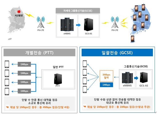 그룹통신기술은 3GPP표준기반으로 하나의 채널을 통해 일대다(一對多) 방식의 실시간 통화가 가능케한 채널 구조로, 최소한의 망 자원을 활용해 대규모 그룹통신이 가능하다.