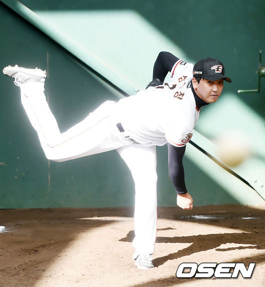 25일 일본 고치에서 진행된 한화 이글스의 전지훈련에서 한화 심수창이 불펜 피칭을 하고 있다.