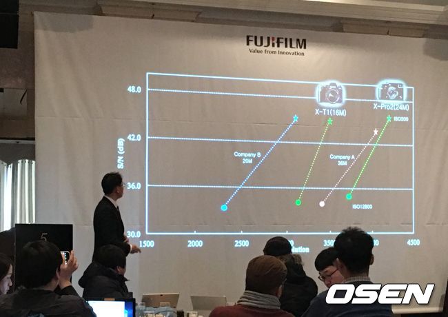 이다 토시히사 사장은 "컴팩트 카메라 중심의 시장에서 한국은 최첨단을 달리는 시장이라는 느낌이었다. 이후 스마트폰의 영향이 가장 먼저 보인 시장이기도 하다. X시리즈 중심의 하이엔드 카메라 측면에서 보면 세계 시장과 큰 차이는 없다고 본다. 카메라나 사진 본질을 추구하는 애호가들은 어디나 동일하게 존재하기 때문"이라고 밝혔다.