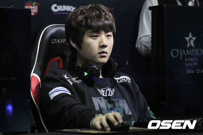 SK텔레콤이 27일 서울 용산 OGN e스포츠 상설경기장에서 열린 '롯데 꼬깔콘 LOL 챔피언스(이하 롤챔스)' 스프링 2016시즌 락스와 1라운드 경기서 '뱅' 배준성의 하드 캐리로 기선을 제압했다.