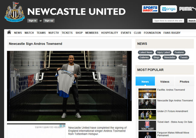 앤드로스 타운센드(25)가 뉴캐슬의 유니폼을 입게 됐다.
