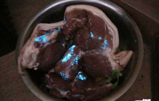 그 것은 어두운 상태에서 돼지 고기에 형광색으로 발광하는 현상이었으며, 이를 이상하게 여긴 여성은 반복해서 고기를 씼고 썰어 봤지만 이러한 발광 현상은 없어지지 않았고 , 이 여성은 이러한 사실을 사진으로 찍어 중국판 SNS에 올렸으며 이로 인해 현재 중국 전역에서 많은 관심과 우려를 모으고 있다.