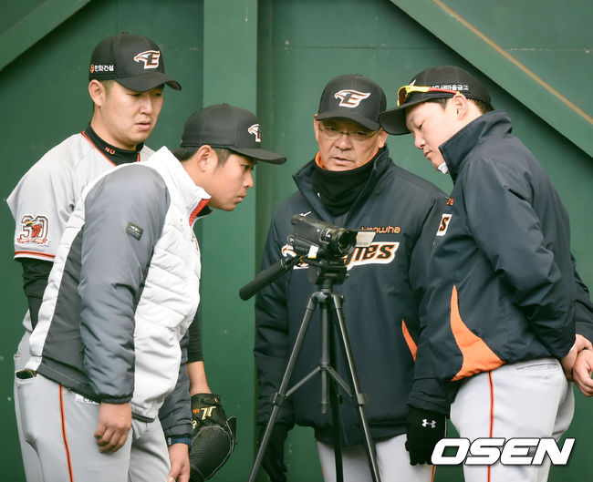 김성근 감독은 "송은범이 좋아질 것 같다"며 "예전에 했던 연습 방법대로 해봤다"고 말했다. SK 시절 가장 좋았을 때 모습을 되찾기 위해 여러 가지 방법을 찾고 있다. 지난해 일본 오키나와 마무리캠프 때만 해도 송은범 본인에게 맡겼지만 이제는 1대1 교습이 시작됐다.