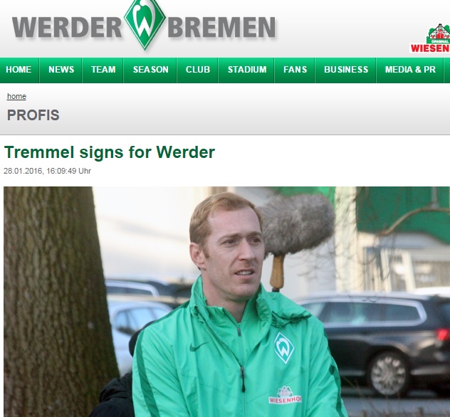 브레멘은 29일(한국시간) 구단 공식 홈페이지를 통해 올 시즌까지 트레멜을 임대 영입했다고 밝혔다.