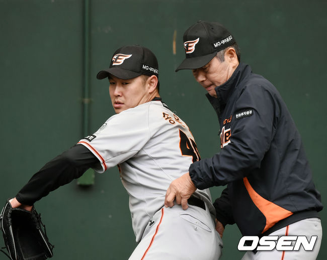 이날 송은범은 오전 11시25분부터 안영명·송창현·임준섭과 같은 조에 속해 불펜에 입장했다. 나머지 투수들과 같이 시작했지만 그들이 끝난 뒤에도 송은범은 홀로 남았다. 김성근 감독이 직접 1대1로 바짝 붙어 오른쪽 뒷다리와 팔 스윙 동작을 세세히 지적했다.