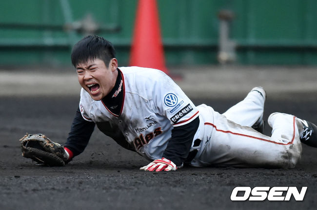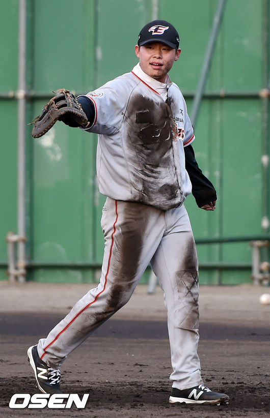 그리고 올해 고치 스프링캠프 명단에도 이름을 올렸다. 스프링캠프를 해외에서 치르는 건 윤승열에게 첫 경험이다. 이곳에서 윤승열은 시쳇말로 '굴림'을 당하고 있다. 연일 1루에서 바바 토시후미 수비코치에게 강도 높은 펑고를 받고 있고, 타격에서도 나머지 배팅 훈련까지 유니폼은 흙투성이가 됐다.