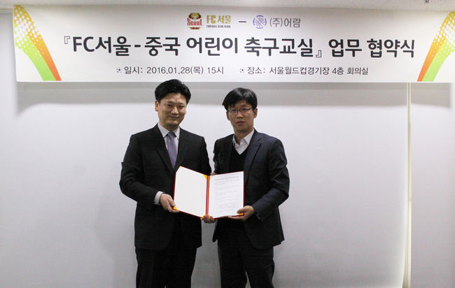 FC서울 유소년 축구교실인 ‘Future of FC서울’이 지난 28일 서울월드컵경기장에서 중국 축구 꿈나무들을 대상으로 한 위탁 교육 운영 협약을 맺었다.