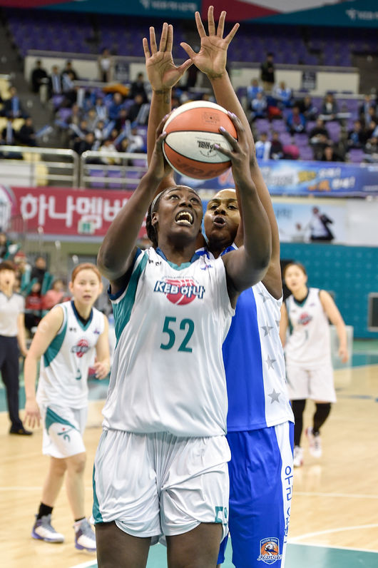 스트릭렌은 2쿼터에만 12점을 몰아치며 추격을 주도했다. 우리은행은 2쿼터 초반 14-12로 전세를 뒤집기도 했다. 모스비와 첼시 리의 골밑득점을 앞세운 KEB하나도 만만치 않았다. KEB하나가 32-26으로 전반전을 앞섰다.