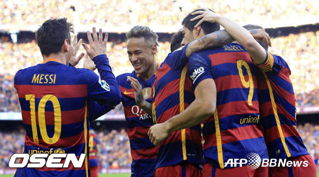 바르셀로나는 31일(한국시간) 스페인 바르셀로나 캄프 노우서 열린 2015-2016 스페인 프리메라리가 22라운드 홈경기서 메시와 수아레스의 연속골에 힘입어 아틀레티코에 2-1 역전승했다.