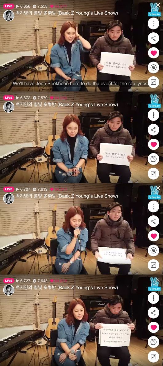 백지영은 1일 자정 디지털싱글 앨범 발매에 앞서, 오후 11시 네이버 스페셜방송 V앱을 통해 첫 라이브 방송 ‘백지영의 별빛 多樂방’을 진행했다.
