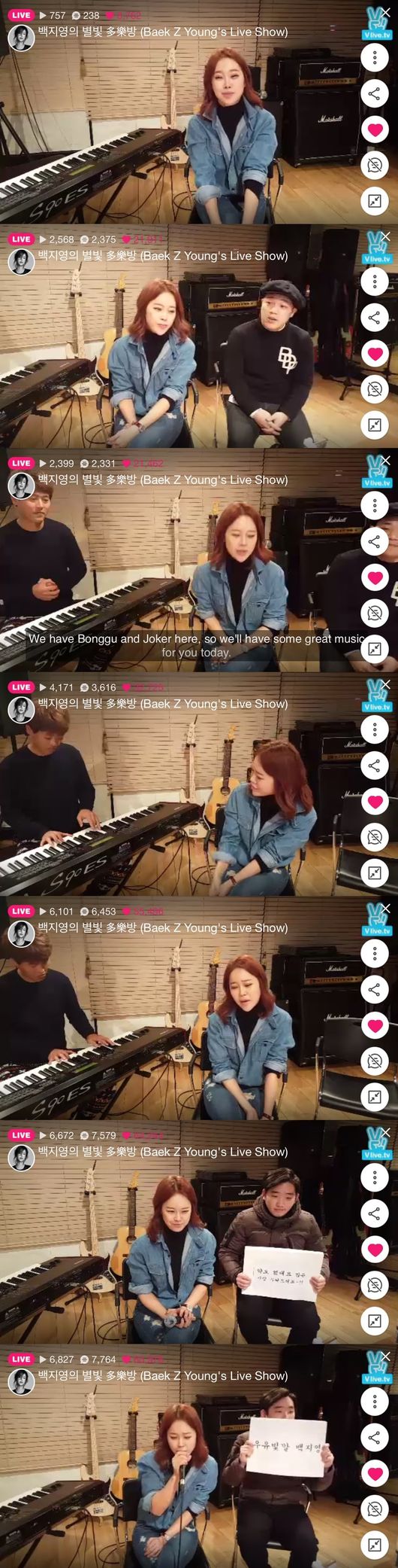 백지영은 네티즌의 신청곡을 받아 싱어송라이터 조커와 감성 남성듀오 길구봉구의 멤버 봉구와 함께 라이브로 들려줬다. 첫 곡은 ‘그 여자’의 듀엣 버전인 ‘그남자 그여자’였다. 백지영의 애절한 보이스와 봉구의 담백하면서도 담담한 화음에 네티즌은 실시간으로 열광했다.