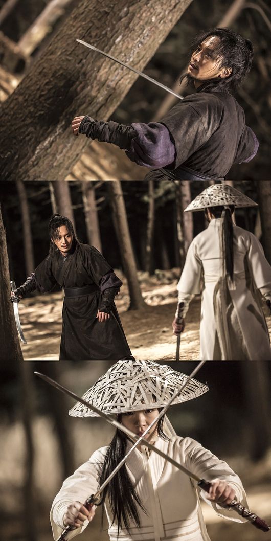 2일 ‘육룡이 나르샤’ 제작진은 곡산검법의 계승자 척사광과 현(現) 삼한제일검 이방지의 진검 승부가 담긴 36회 스틸을 공개하며 이목을 집중시키고 있다. 칼에 찔린 듯 피를 흘리고 있는 이방지, 두 개의 칼을 엇갈려 든 채 매서운 눈빛으로 상대를 바라보고 있는 척사광. 어두운 밤, 칼을 든 채 정면으로 맞선 두 무사의 모습이 시선을 강탈한다.