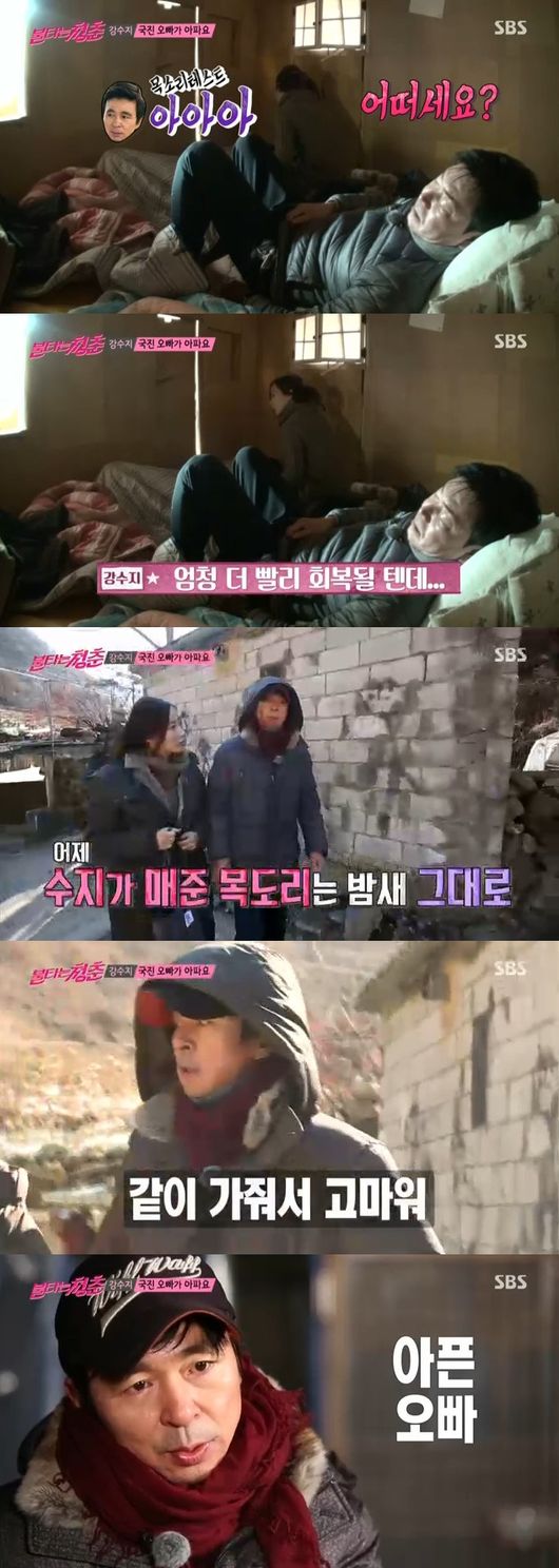 강수지는 “병원 가시는 것 어떻느냐?”라고 김국진을 챙겼다. 그는 “좀더 빨리 회복될 텐데”라고 병원을 가자고 했다. 두 사람은 함께 병원으로 갔다.
