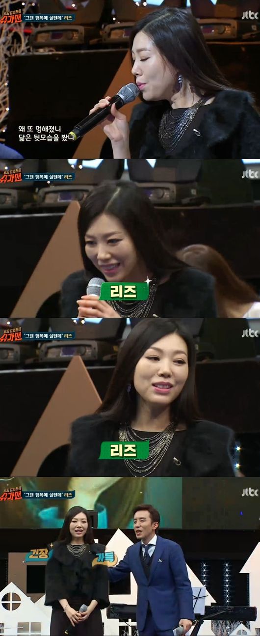 2일 방송된 JTBC '투유 프로젝트-슈가맨'에는 리즈가 출연했다. 리즈는 '그댄 행복에 살텐데'를 불렀고, 노래가 끝난 뒤 긴장한 티를 냈다.