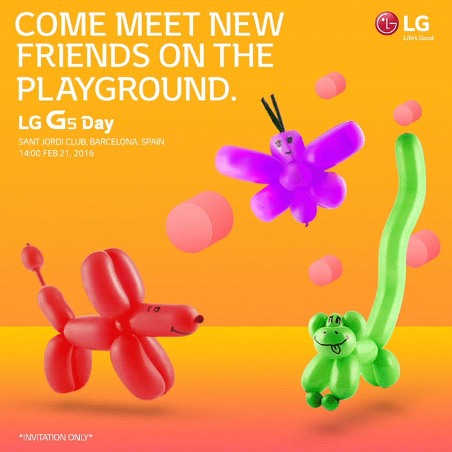 이 초청장에는 'Come meet new friends on the playground'라는 문구와 함께 'LG G5 Day'가 열리는 시간(현지시간 21일 오후 2시)과 장소(산 호르디 클럽, Sant Jordi)가 적혀있다.
