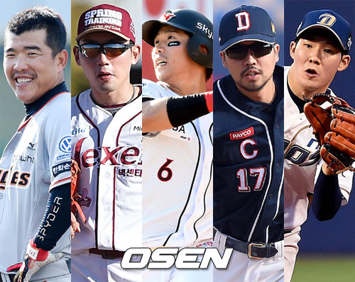 지난해 주장으로 두산에 14년만의 한국시리즈 우승을 이끌었던 오재원도 있다. 지난해 개인 성적은 120경기 타율 2할8푼 11홈런 59타점 31도루. 시즌을 마친 뒤 4년 총액 38억원에 FA 계약을 체결하며 두산에 잔류했다. 주장직을 내려놓은 그는 등번호를 24번으로 바꾸며 변화를 주고 있다. "이제는 뒤에서 지원하며 야구만 하면 될 것 같아서 좋다. 재미있을 것 같다”는 것이 오재원의 말이다.