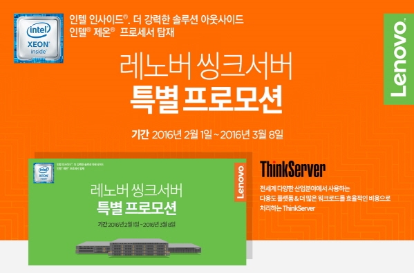 한국레노버가 3월 8일까지 레노버 자체 브랜드인 씽크서버를 한정 특별가에 제공하는 프로모션을 진행한다고 밝혔다.