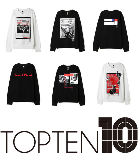베이직한 아이템을 제안하는 탑텐(TOPTEN)이 세계 유수의 명화들을 담은 그래픽 맨투맨 티셔츠를 선보였다.