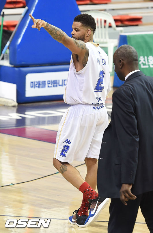 경기종료, 승리한 KCC 에밋이 팬들을 향해 세리머니를 하고 있다. /ouxou@osen.co.kr