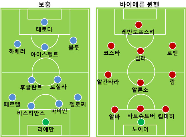 불안한 경기 흐름을 무너뜨린 건 바이에른 뮌헨의 주포 로베르트 레반도프스키였다. 레반도프스키는 전반 38분 토마스 뮐러와 공을 주고 받으며 페널티 지역으로 침투, 오른발 슈팅을 시도해 보훔의 골문을 흔들었다.
