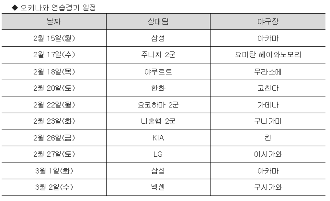 SK와이번스(대표이사 류준열)는 2월 12일(금)부터 3월 4일(금)까지 21박 22일 일정으로 일본 오키나와 스프링캠프를 실시한다.