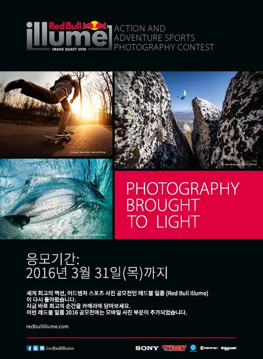 참가를 희망하는 프로 및 아마추어 포토그래퍼들은, 오는 3월 31일까지 ‘레드불 일룸’ 홈페이지를 통해 각 부문별 최대 5장의 사진을 지원서와 함께 제출하면 된다.