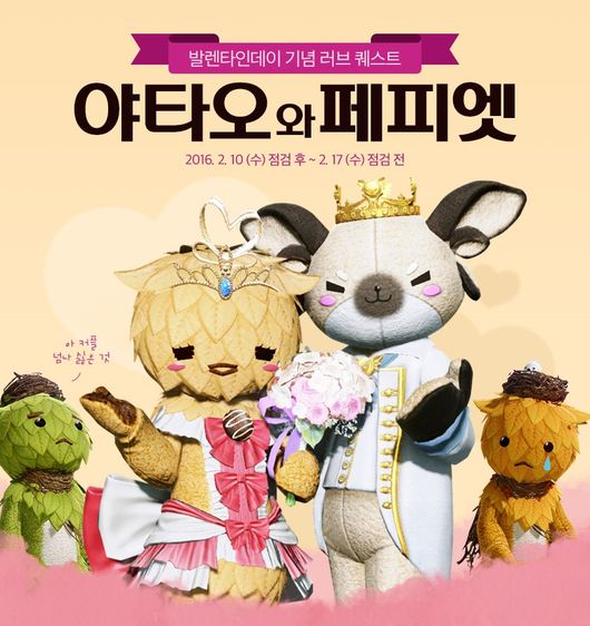 다른 커플의 행복을 기원할 수 있는 너른 마음을 가진 소유자라면 MMORPG ‘아키에이지’의 발렌타인데이 이벤트를 눈 여겨 보자. ‘아키에이지’의 ‘밸런타인데이 기념 러브 퀘스트’에는 ‘로미오와 줄리엣’ 을 패러디한 ‘야타오와 페피엣’가 등장한다.