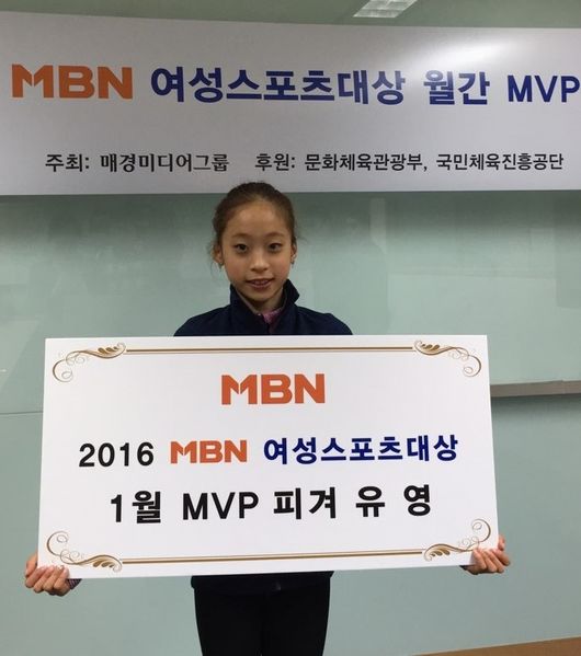 ‘피겨 샛별‘ 유영(12)이 2016 MBN 여성스포츠대상 1월 MVP를 수상했다.