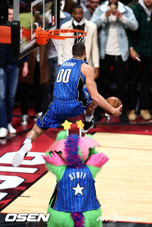 애런 고든(21, 올랜도)의 덩크슛이 아직도 팬들에게 화제다. NBA 올스타 전야제가 14일 오전(한국시간) 캐나다 토론토 에어 캐나다 센터에서 개최됐다. 잭 라빈(21, 미네소타)은 결승전에서 고든을 누르고 2년 연속 덩크슛 챔피언에 등극했다. NBA에서 2년 연속 덩크슛 챔피언은 마이클 조던(1987, 1988), 제이슨 리차드슨(2002, 2003), 네이트 로빈슨(2009, 2010)에 이어 라빈이 네 번째다.