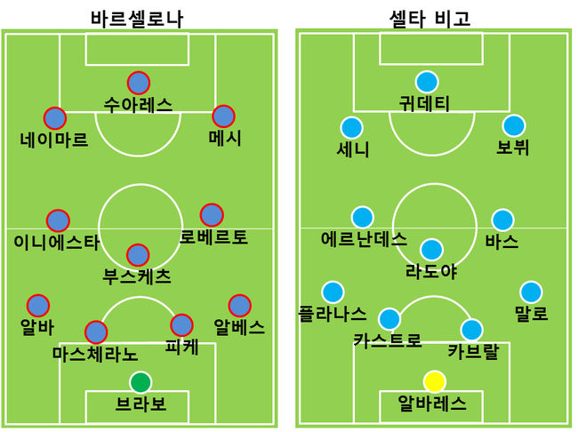 하지만 셀타 비고는 기죽지 않았다. 출전 정지 징계로 4명이 결장하고 부상으로 2명이 빠져 기존 전력의 50% 수준밖에 되지 않았음에도 날카로운 반격으로 바르셀로나를 당황하게 만들었다.